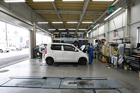 信頼の国土交通省指定整備工場でベテランメカニックが安心の整備を行ないます。スズキ車車両を知り尽くした経験豊かなメカニックが、お客さまのご要望に合わせて3つのメニューで安心な車検整備を行ないます。スズキ車両の整備を行っているベテランメカニックと、最新のコンピューター診断スキルを持った中堅若手メカニック等、スズキ車両を知り尽くした整備士が、メーカー指定の整備工場でしっかりメンテナンスを行ないますのでご安心ください。